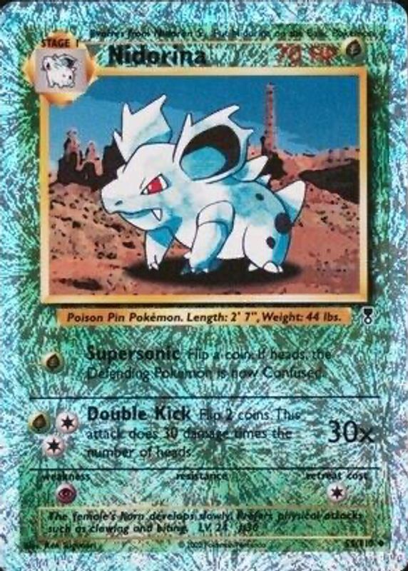 Nidorina's Pokemon cards are available in at least 25 sets. Nidorina's biggest 7-day price movers are 2006 EX: Dragon Frontiers #034/101 Base, 2002 Legendary Collection #55 Reverse Holo, and 2002 Japanese Mysterious Mountains #08/88 1st Edition.