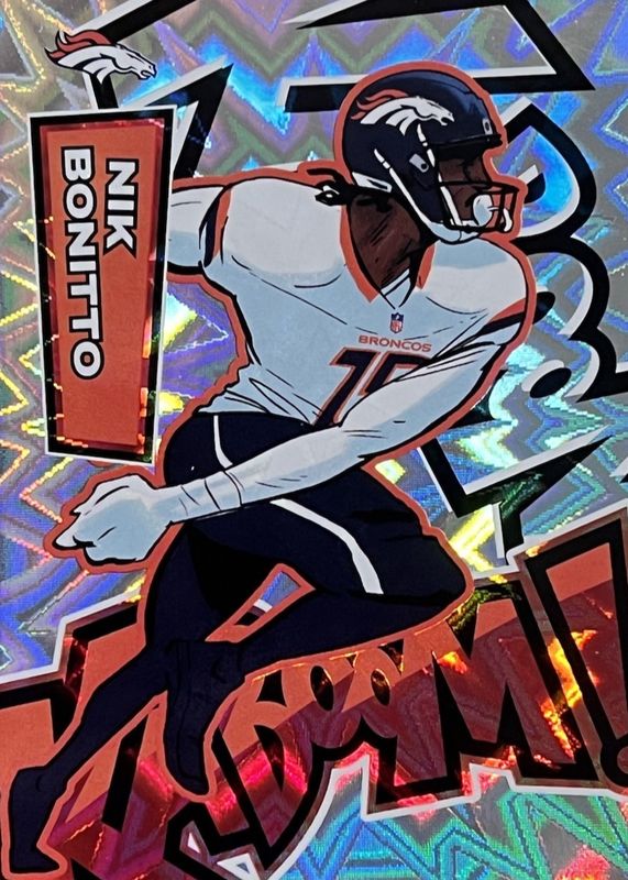 Nik Bonitto's Football cards are available in at least 6 sets. Nik Bonitto's biggest 7-day price movers are 2025 Absolute #12 Kaboom! Vertical /(SSP), 2025 Absolute #12 Kaboom! Vertical - Gold /10, and 2025 Absolute #12 Kaboom! Vertical - Green /1.