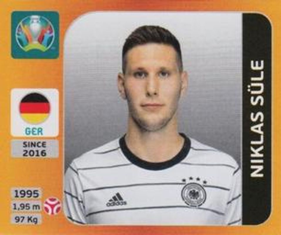 Niklas Sule's Soccer cards are available in at least 42 sets. Niklas Sule's biggest 7-day price movers are 2021 UEFA Euro 2020 Tournament Edition #612x Tournament Edition Updates, 2021 Panini UEFA Euro 2020 Tournament Edition Pearl #C6 Coca Cola, and 2021 Panini UEFA Euro 2020 Tournament Edition Blue #612x Updates.