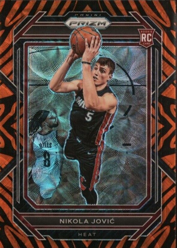 Nikola Jovic's Basketball cards are available in at least 54 sets. Nikola Jovic's biggest 7-day price movers are 2022 Prizm #236 Choice Tiger Stripe /(SSP), 2022 Optic #224 Rated Rookie Signatures - Choice, and 2022 Prizm Draft Picks #II-NJ Instant Impact - Mojo /25.
