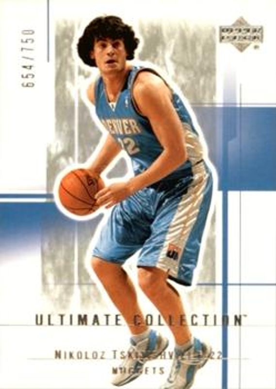 Nikoloz Tskitishvili's Basketball cards are available in at least 21 sets. Nikoloz Tskitishvili's biggest 7-day price movers are 2003 Upper Deck Ultimate Collection #23 Base /750, 2003 Upper Deck Ultimate Collection #23 Limited /25, and 2003 Upper Deck Ultimate Collection #23 Limited Black /1.