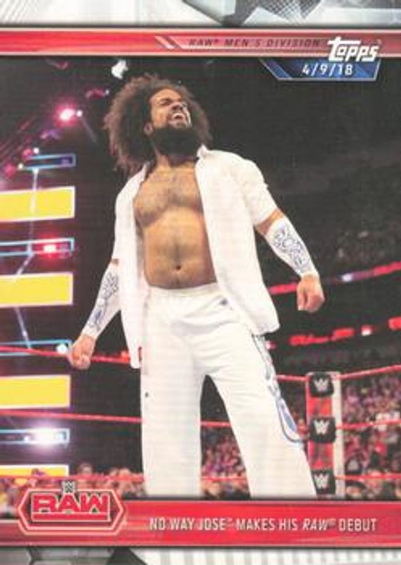 No Way Jose's Wrestling cards are available in at least 14 sets. No Way Jose's biggest 7-day price movers are 2019 Topps WWE Road to Wrestlemania #U-1 Update, 2019 Topps WWE Undisputed #UAR-NW Undisputed Auto Relic - Red /1, and 2019 Topps WWE Undisputed #UR-NW Undisputed Relic - Blue /25.