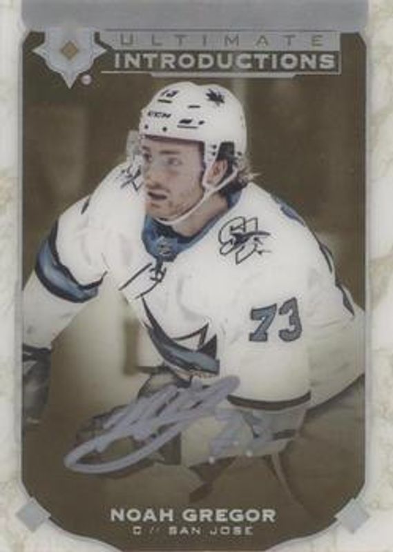 The biggest 30-day change Noah Gregor cards are 2019 Upper Deck Ultimate Collection #UI-78 Ultimate Introductions Gold Autographs, 2019 Upper Deck Ultimate Collection #UI-78 Ultimate Introductions, and 2019 Upper Deck Ultimate Collection #UI-78 Ultimate Introductions - Onyx Black /25.