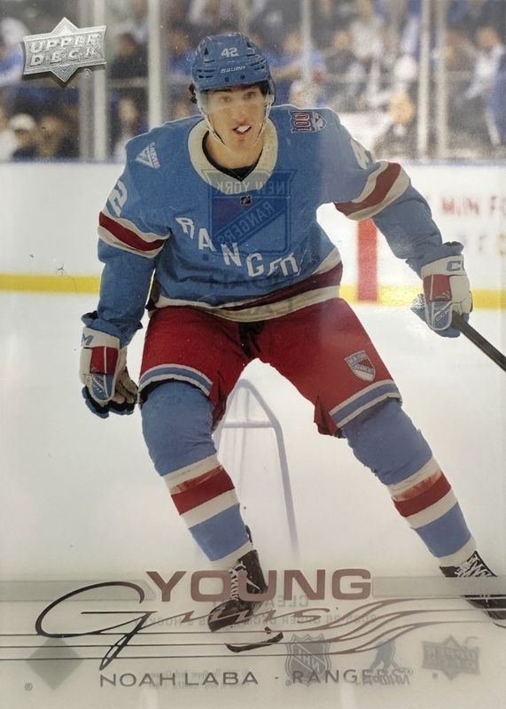 Noah Laba's Hockey cards are available in at least 1 sets. Noah Laba's biggest 7-day price movers are 2025 Upper Deck #463 Young Guns - Clear Cut, 2025 Upper Deck #463 Young Guns - Deluxe /250, and 2025 Upper Deck #463 Young Guns - Exclusives /100.