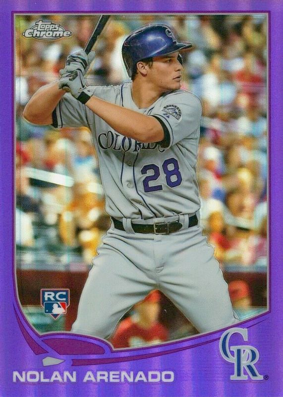 Nolan Arenado's Baseball cards are available in at least 155 sets. Nolan Arenado's biggest 7-day price movers are 2024 Topps #HFA-5 Home Field Advantage /(SSP), 2026 Topps #193 Team Color Border Variation, and 2013 Topps Chrome #78 Purple Refractor.