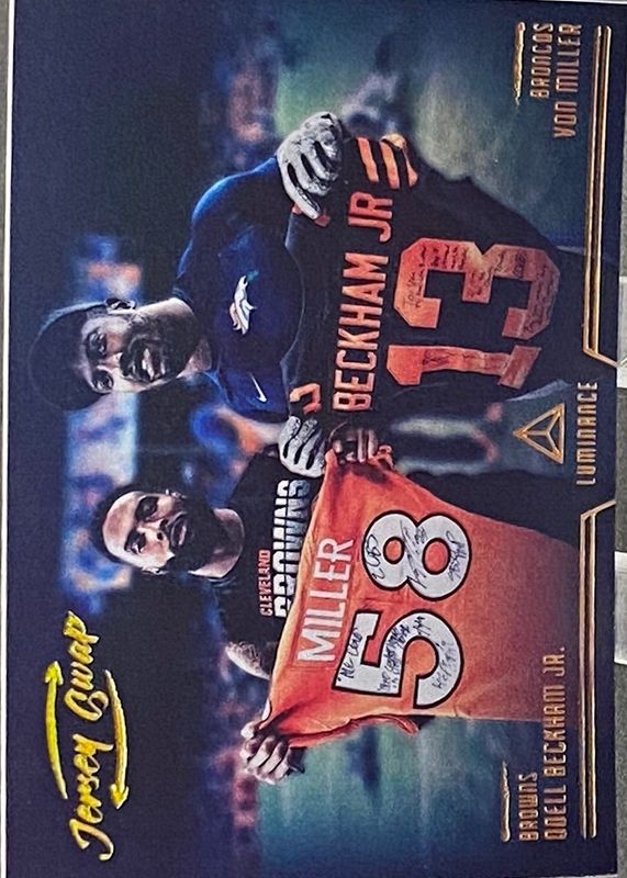 Odell Beckham Jr. / Von Miller's Football cards are available in at least 1 sets. Odell Beckham Jr. / Von Miller's biggest 7-day price movers are 2020 Luminance #JS2 Jersey Swap /(SSP).