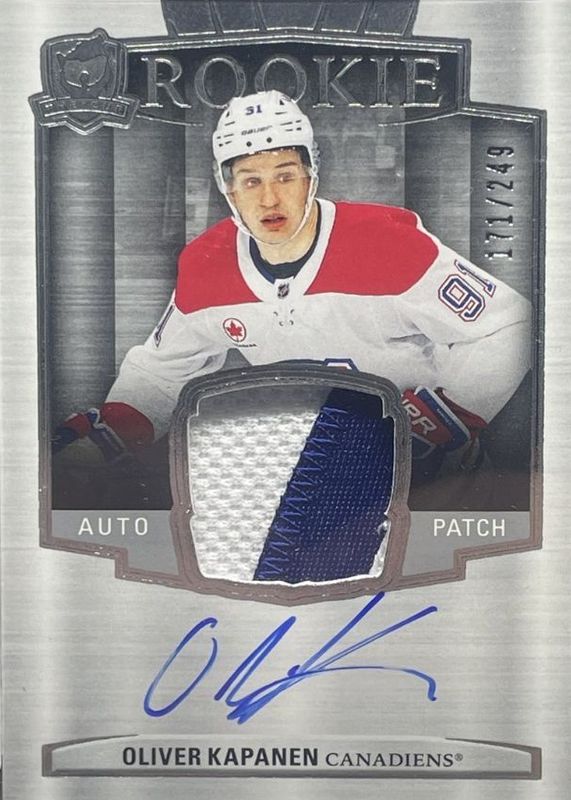 Oliver Kapanen's Hockey cards are available in at least 8 sets. Oliver Kapanen's biggest 7-day price movers are 2024 Upper Deck The Cup #165 Rookie Patch Auto (/249), 2024 Upper Deck #461 Young Guns Base, and 2024 Upper Deck #461 Young Guns - Clear Cut.