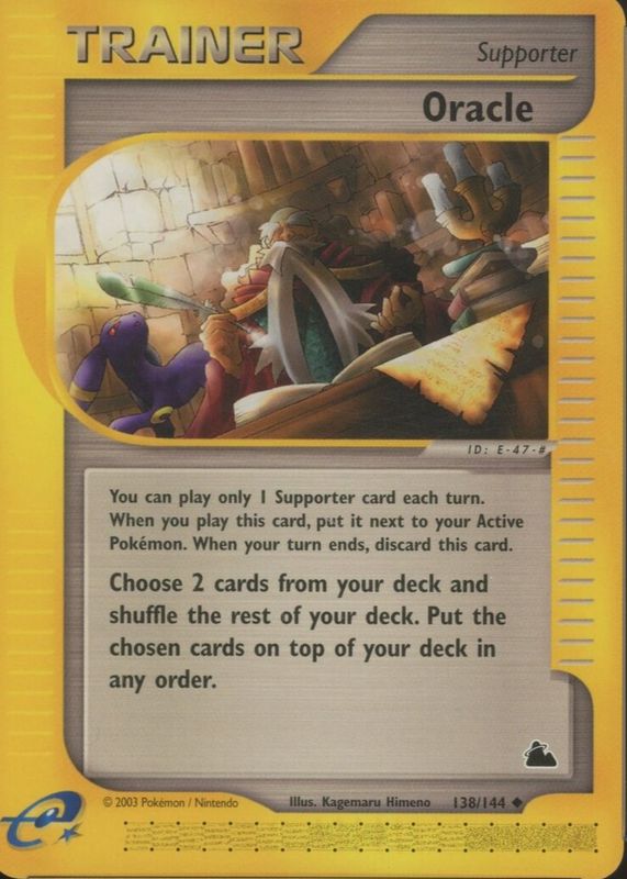 Oracle's Pokemon cards are available in at least 2 sets. Oracle's biggest 7-day price movers are 2003 Skyridge #138/144 Base, 2003 Skyridge #138/144 Reverse Holo, and 2002 Japanese Split Earth #79/88 1st Edition.
