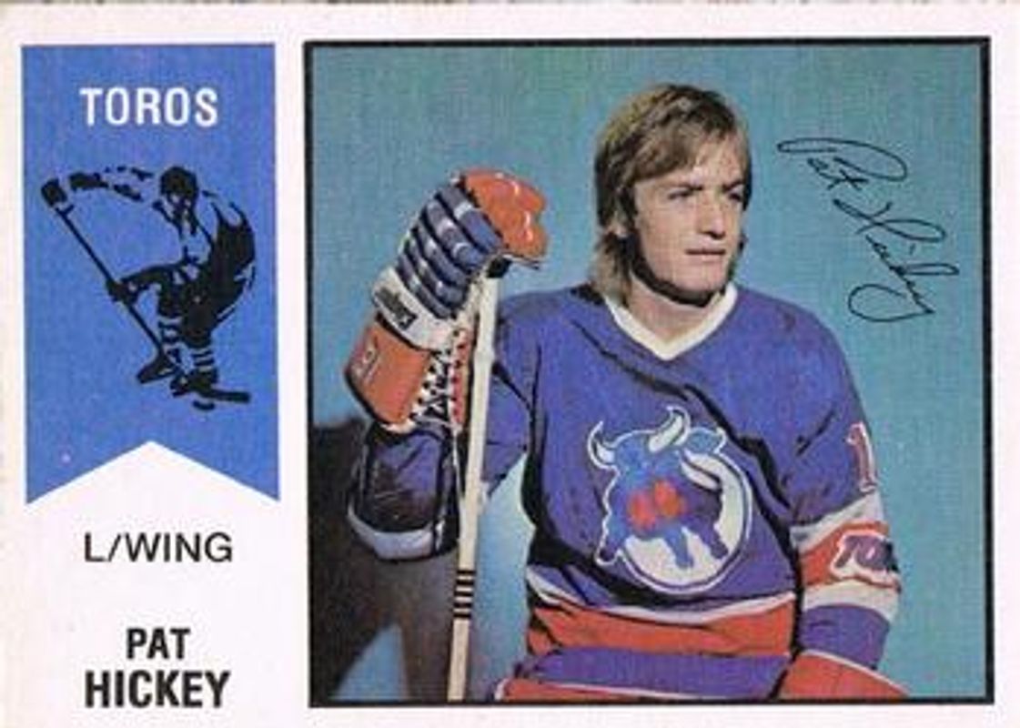Pat Hickey's Hockey cards are available in at least 8 sets. Pat Hickey's biggest 7-day price movers are 1974 O-Pee-Chee WHA #24 Base, 1975 O-Pee-Chee #345 Base, and 1976 Topps #107 Base.