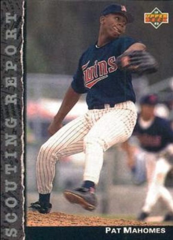 Pat Mahomes' Baseball cards are available in at least 14 sets. Pat Mahomes' biggest 7-day price movers are 1992 Upper Deck #SR16 Scouting Report, 1992 Upper Deck #776 Base, and 1992 Upper Deck #776 Gold Hologram.