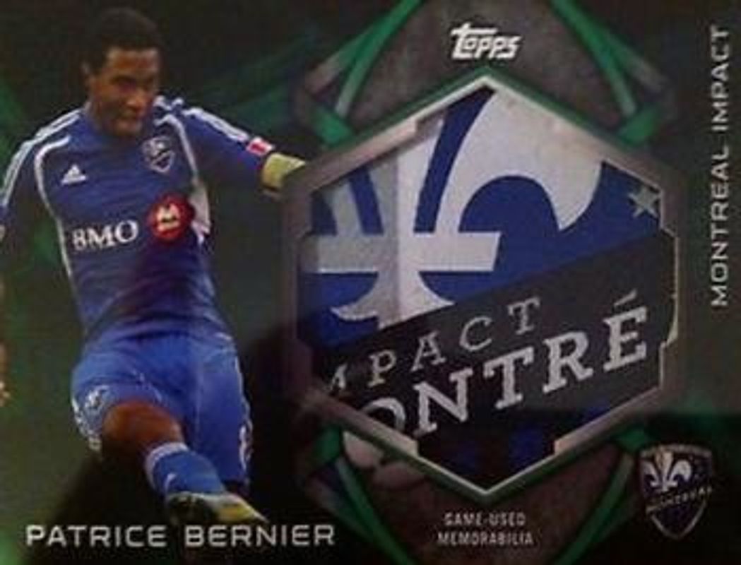 Patrice Bernier's Soccer cards are available in at least 5 sets. Patrice Bernier's biggest 7-day price movers are 2014 Topps MLS #KIT-PB Relics Golazo Patches /1, 2014 Topps MLS #57 Black /10, and 2014 Topps MLS #KIT-PB Relics Purple /49.