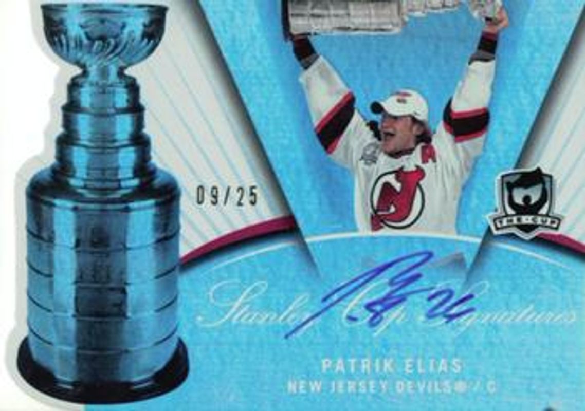 Patrik Elias' Hockey cards are available in at least 225 sets. Patrik Elias' biggest 7-day price movers are 2007 Upper Deck The Cup #SC-EL Stanley Cup Signatures /25, 2005 Upper Deck The Cup #63 Printing Plates Black /1, and 2007 Upper Deck The Cup #LL-EL Limited Logos /25.