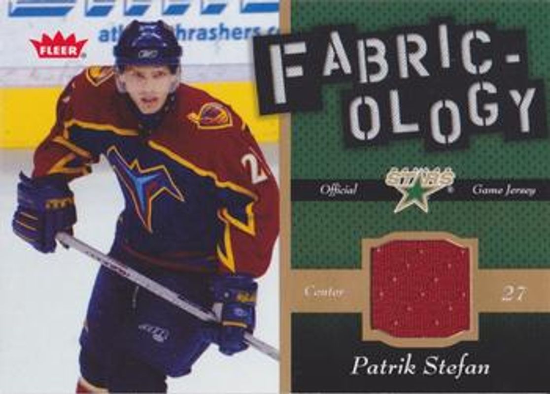 Patrik Stefan's Hockey cards are available in at least 24 sets. Patrik Stefan's biggest 7-day price movers are 2006 Fleer #F-PA Fabricology, 2001 In The Game Be a Player Memorabilia #69 Toronto Fall Expo Emerald /10, and 2001 In The Game Be a Player Memorabilia #69 Sapphire /100.