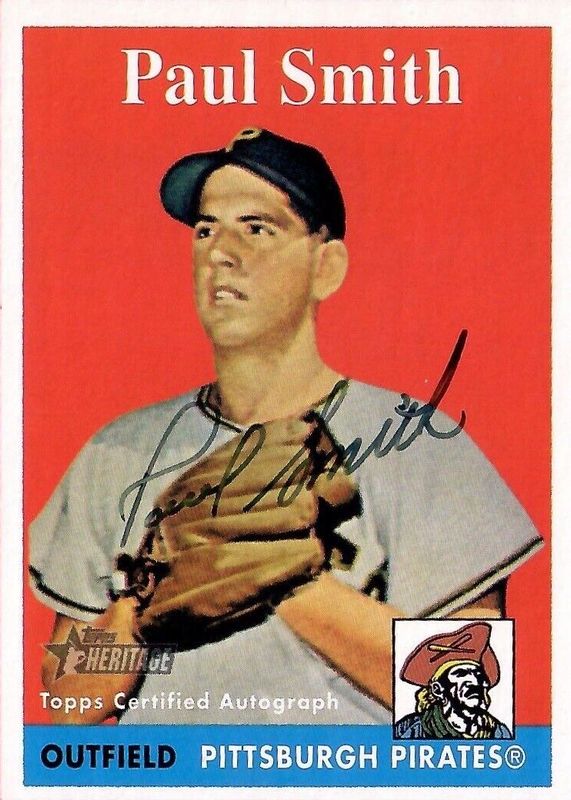 Paul Smith's Baseball cards are available in at least 6 sets. Paul Smith's biggest 7-day price movers are 2007 Topps Heritage #ROA-PS Real One Autographs, 1954 Topps #11 Base, and 1957 Topps #345 Base.