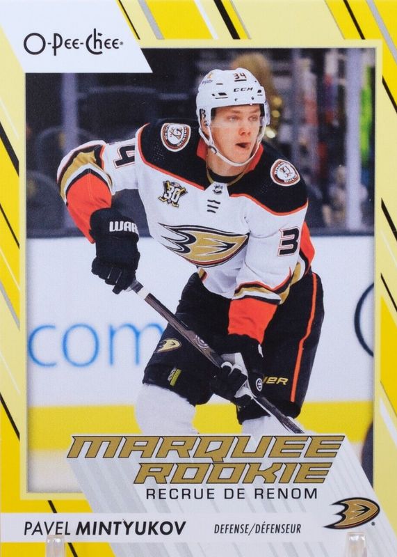 Pavel Mintyukov's Hockey cards are available in at least 35 sets. Pavel Mintyukov's biggest 7-day price movers are 2023 Upper Deck #488 Young Guns Base, 2023 SP Authentic #183 Future Watch Auto /999, and 2023 O-Pee-Chee #593 Marquee Rookies - Yellow Border.