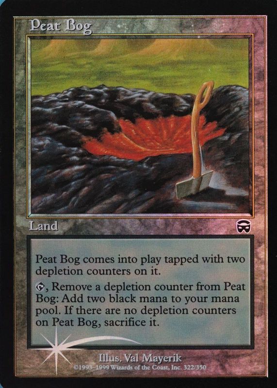 The biggest 30-day change Peat Bog cards are 1999 Mercadian Masques #322 Foil.