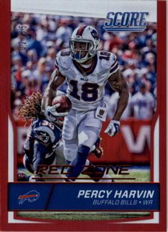 Percy Harvin's Football cards are available in at least 150 sets. Percy Harvin's biggest 7-day price movers are 2016 Score #39 Jumbo Red Zone /35, 2016 Score #39 Gold Zone /50, and 2016 Score #39 Jumbo First Down /10.