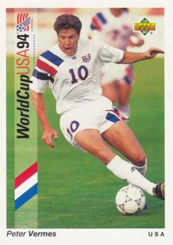 Peter Vermes' Soccer cards are available in at least 2 sets. Peter Vermes' biggest 7-day price movers are 1993 Upper Deck World Cup Preview (English/Spanish) #24 Base, 1993 Upper Deck World Cup Preview (English/Spanish) #165 Base, and 1993 Upper Deck World Cup Preview (English/Spanish) #24 USA Autographed.