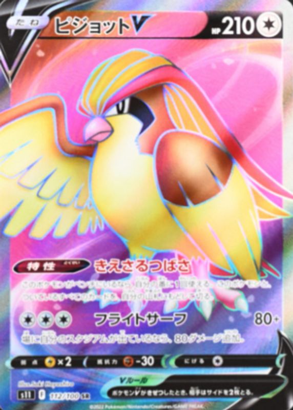 Pidgeot V's Pokemon cards are available in at least 2 sets. Pidgeot V's biggest 7-day price movers are 2022 Japanese Sword & Shield: Lost Abyss #112/100 Super Rare, 2022 Japanese Sword & Shield: Lost Abyss #082/100 Double Rare, and 2022 Sword & Shield: Lost Origin #137/196 Holo.