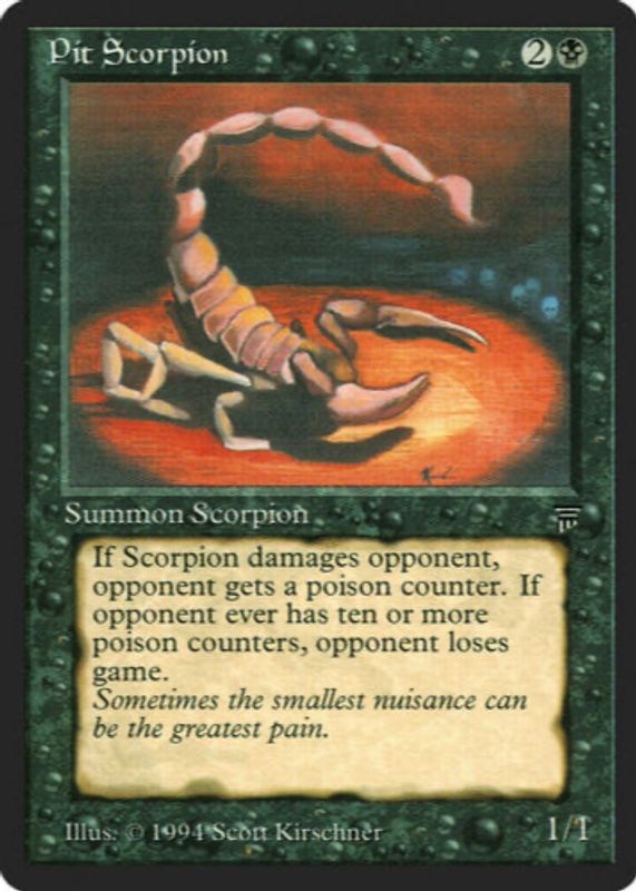 Pit Scorpion's Magic: The Gathering cards are available in at least 2 sets. Pit Scorpion's biggest 7-day price movers are 1994 Legends Base, and 1995 Fourth Edition Base.