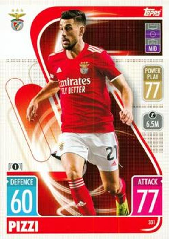 The biggest 30-day change Pizzi cards are 2021 Topps Match Attax Champions & Europa League #331 Base, 2021 Topps Match Attax Champions & Europa League #331 Crystal, and 2018 Treble #83 Purple /49.