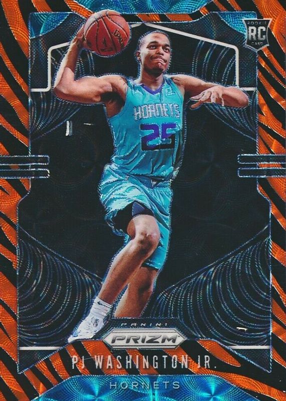PJ Washington Jr.'s Basketball cards are available in at least 112 sets. PJ Washington Jr.'s biggest 7-day price movers are 2019 Prizm #258 Base, 2019 Prizm #258 Choice Tiger Stripe /(SSP), and 2020 Impeccable #EV-PJW BC Elegance Veteran Jersey Autographs - Platinum /1.