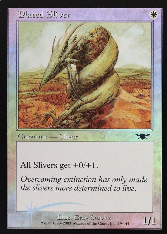 Plated Sliver's Magic: The Gathering cards are available in at least 1 sets. Plated Sliver's biggest 7-day price movers are 2003 Legions #19 Foil, and 2003 Legions #19 Base.