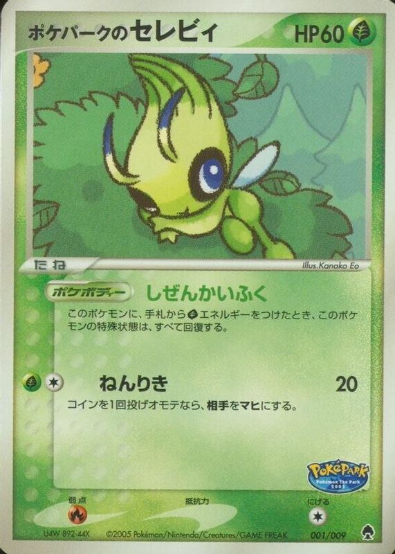 PokePark's Celebi's Pokemon cards are available in at least 1 sets. PokePark's Celebi's biggest 7-day price movers are 2005 Japanese PokePark Forest #001/009 Holo.