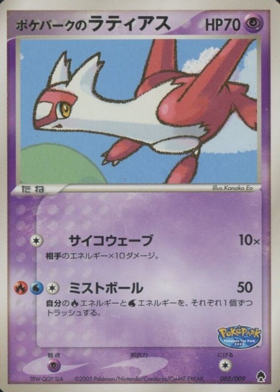 PokePark's Latias' Pokemon cards are available in at least 1 sets. PokePark's Latias' biggest 7-day price movers are 2005 Japanese PokePark Forest #005/009 Base.