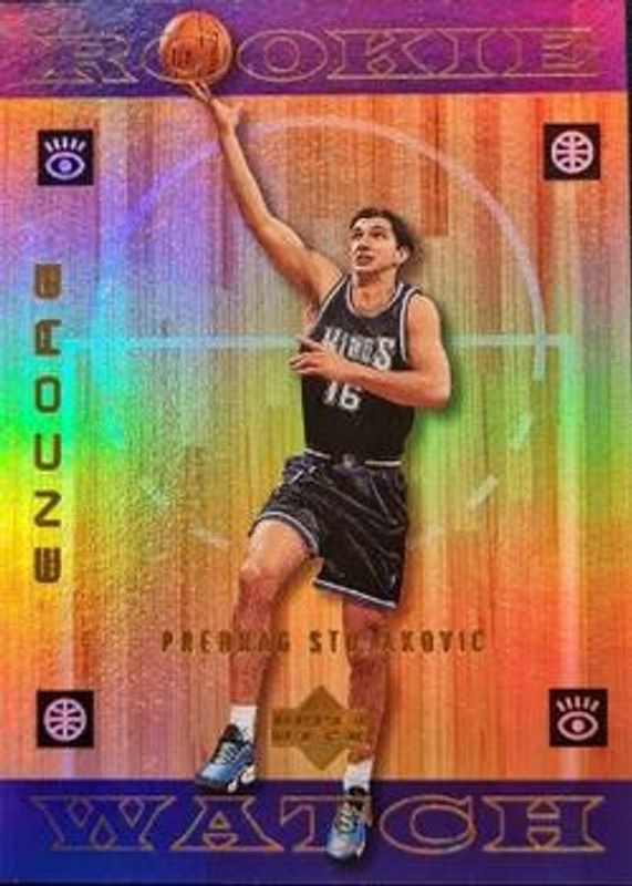 Predrag Stojakovic's Basketball cards are available in at least 23 sets. Predrag Stojakovic's biggest 7-day price movers are 1998 Upper Deck Encore #132 F/X /125, 1998 Upper Deck Encore #132 Base, and 2000 Topps Tipoff #81 Base.