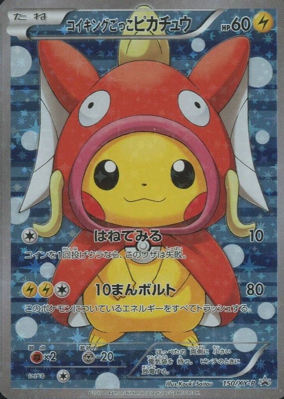 Pretend Magikarp Pikachu's Pokemon cards are available in at least 1 sets. Pretend Magikarp Pikachu's biggest 7-day price movers are 2015 Japanese XY-P Promo #150/XY-P Pretend Special Box.
