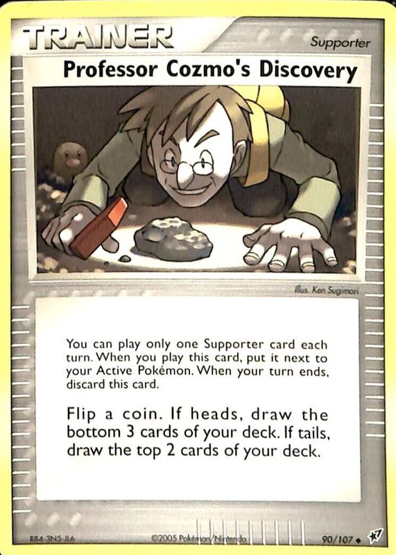 Professor Cozmo's Discovery's Pokemon cards are available in at least 2 sets. Professor Cozmo's Discovery's biggest 7-day price movers are 2005 EX: Deoxys #090/107 Base, 2006 EX: Holon Phantoms #089/110 Reverse Holo, and 2006 EX: Holon Phantoms #089/110 Base.