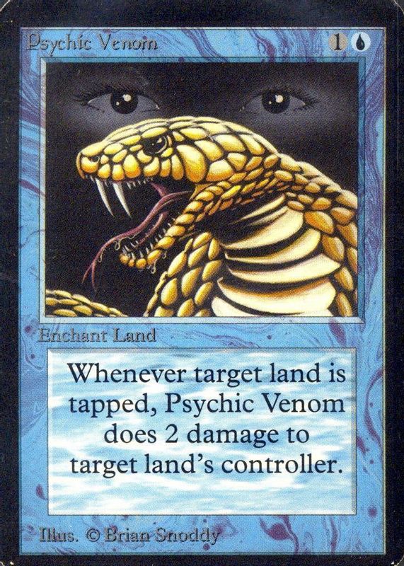 Psychic Venom's Magic: The Gathering cards are available in at least 4 sets. Psychic Venom's biggest 7-day price movers are 1993 Alpha Edition Base, 1993 Unlimited Edition Base, and 1995 Fourth Edition Base.