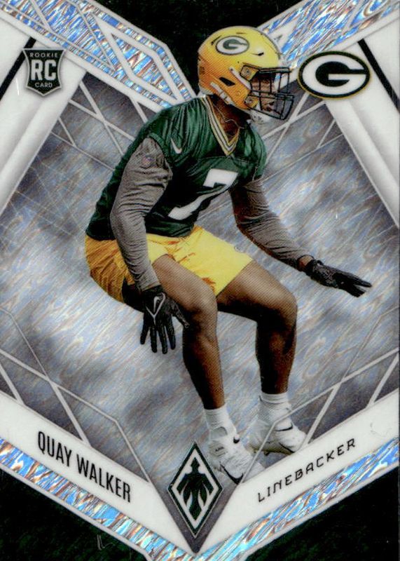 Quay Walker's Football cards are available in at least 10 sets. Quay Walker's biggest 7-day price movers are 2022 Mosaic #372 Choice Peacock /(SSP), 2022 Contenders Optic #192 Rookie Ticket Auto - Gold Vinyl /1, and 2022 Certified #153 FOTL Mirror Black /1.