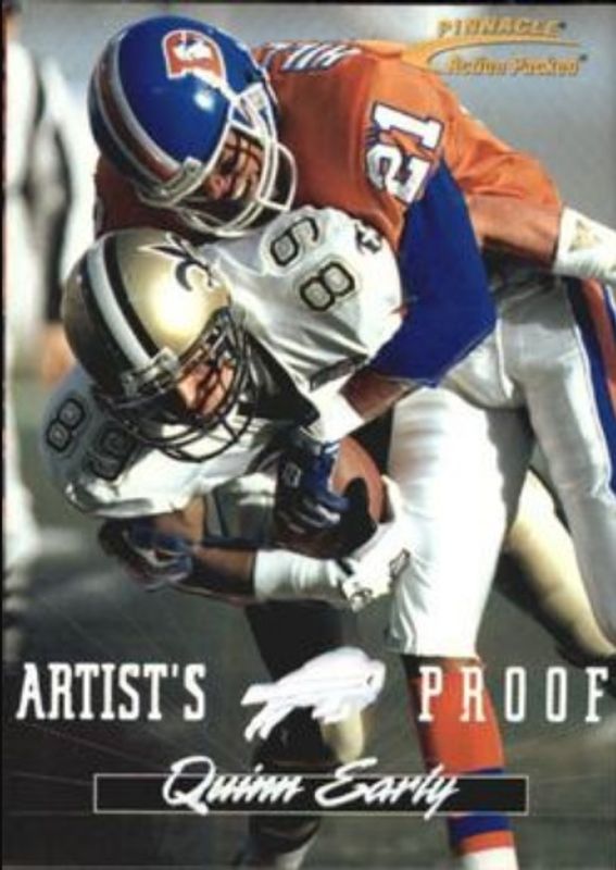 Quinn Early's Football cards are available in at least 19 sets. Quinn Early's biggest 7-day price movers are 1996 Action Packed Flagship #91 Artist's Proofs, 1996 Action Packed Flagship #91 Base, and 1997 Donruss #75 Base.