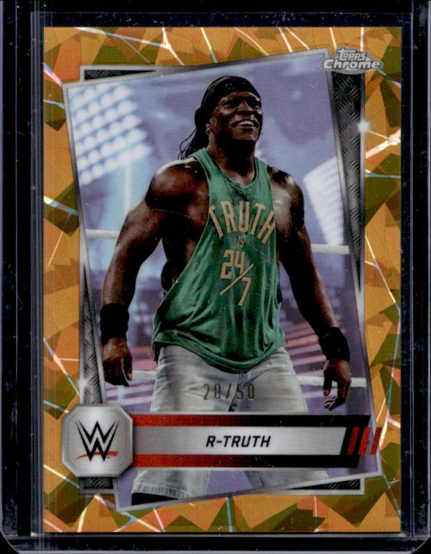 R-Truth's Wrestling cards are available in at least 39 sets. R-Truth's biggest 7-day price movers are 2025 Topps Chrome WWE Sapphire Edition #97 Base Chrome - Gold Refractor /50, 2025 Topps Chrome WWE Sapphire Edition #97 Base Chrome - Green Refractor /75, and 2025 Topps Chrome WWE Sapphire Edition #97 Base Chrome - Padparadscha /1.