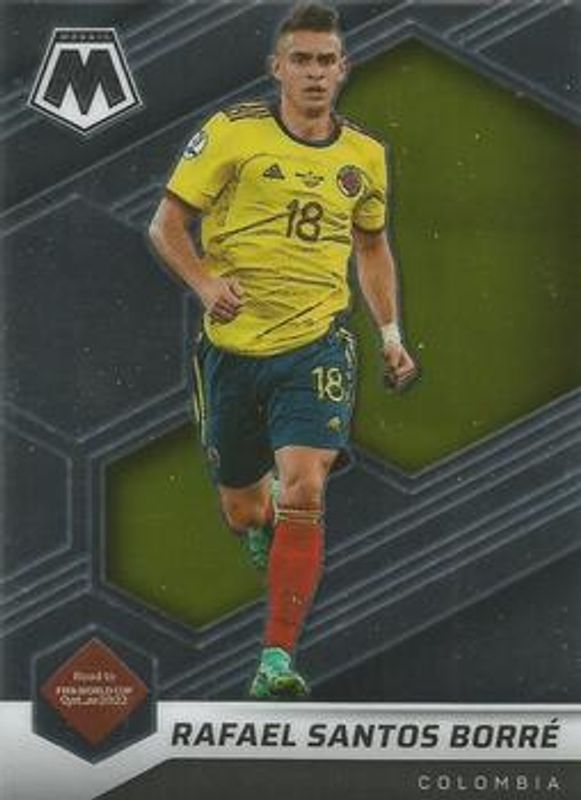Rafael Santos Borre's Soccer cards are available in at least 14 sets. Rafael Santos Borre's biggest 7-day price movers are 2021 Mosaic Road to FIFA World Cup #182 Base, 2021 Mosaic Road to FIFA World Cup #182 Red, and 2021 Mosaic Road to FIFA World Cup #182 Black /1.