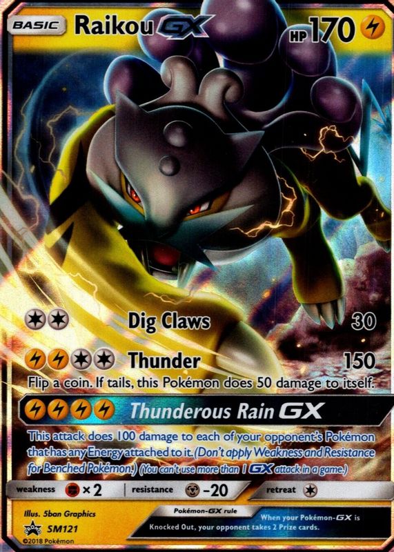Raikou GX's Pokemon cards are available in at least 1 sets. Raikou GX's biggest 7-day price movers are 2018 Sun & Moon: Black Star Promo #SM121 Premium Collection (Legends of Johto GX).