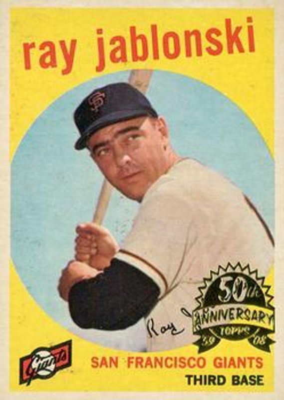 Ray Jablonski's Baseball cards are available in at least 12 sets. Ray Jablonski's biggest 7-day price movers are 2008 Topps Heritage #342 50th Anniversary Buybacks, 1954 Topps Sports Illustrated #26 Base, and 1954 Topps Canadian #26 Base.