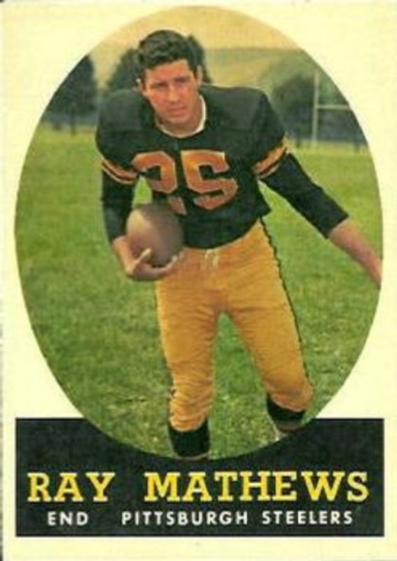 Ray Mathews' Football cards are available in at least 8 sets. Ray Mathews' biggest 7-day price movers are 1958 Topps #78 Base, 1957 Topps #63 Base, and 1994 Topps Archives 1957 #63 Gold.