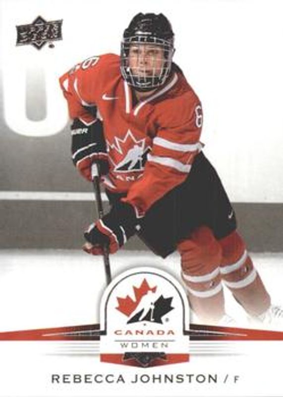 Rebecca Johnston's Hockey cards are available in at least 9 sets. Rebecca Johnston's biggest 7-day price movers are 2014 Upper Deck Team Canada Juniors #149 Base, 2014 Upper Deck Team Canada Juniors #75 Base, and 2014 Upper Deck Team Canada Juniors #149 Printing Plates Cyan /1.