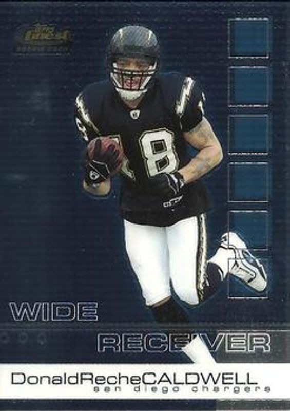 Reche Caldwell's Football cards are available in at least 16 sets. Reche Caldwell's biggest 7-day price movers are 2002 Topps Finest #82 Base, 2002 Topps Finest #82 Gold Refractor /25, and 2002 Topps Finest #82 Refractor /250.