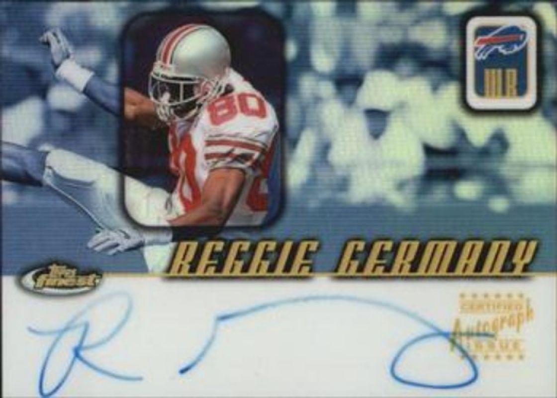 Reggie Germany's Football cards are available in at least 2 sets. Reggie Germany's biggest 7-day price movers are 2001 Topps Finest #FA-RG Autographs, 2001 Topps Debut #163 Base /499, and 2001 Topps Debut #163 Redemption.