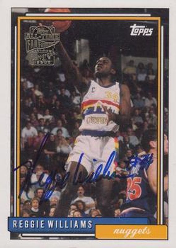 Reggie Williams' Basketball cards are available in at least 32 sets. Reggie Williams' biggest 7-day price movers are 2005 Topps 1952 Style #FFA-RWS All Time Fan Favorites Autographs, 2005 Topps 1952 Style #FFA-RWS All Time Fan Favorites Autographs Rainbow Foilboard /10, and 1989 Fleer #74 Base.