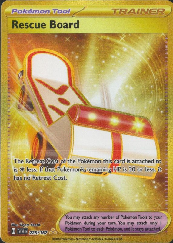 Rescue Board's Pokemon cards are available in at least 4 sets. Rescue Board's biggest 7-day price movers are 2024 Scarlet & Violet: Twilight Masquerade #225/167 Hyper Rare, 2024 Japanese Scarlet & Violet: Crimson Haze #095/066 Ultra Rare, and 2024 Japanese Scarlet & Violet: Terastal Fest ex #153/187 Base.