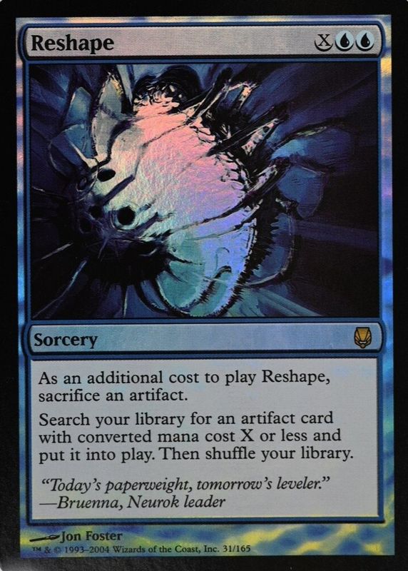 Reshape's Magic: The Gathering cards are available in at least 1 sets. Reshape's biggest 7-day price movers are 2004 Darksteel #31 Foil, and 2004 Darksteel #31 Base.