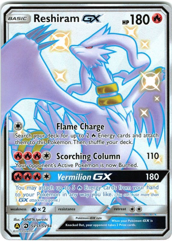 Reshiram GX's Pokemon cards are available in at least 3 sets. Reshiram GX's biggest 7-day price movers are 2018 Japanese Sun & Moon: GX Ultra Shiny #211/150 Shiny Super-Rare (Full Art), 2018 Sun & Moon: Dragon Majesty #71/70 Holo (Secret), and 2018 Sun & Moon: Dragon Majesty #65/70 Holo (Full Art).