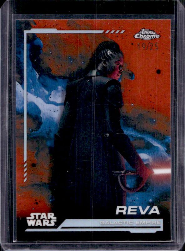 Reva's Star Wars cards are available in at least 10 sets. Reva's biggest 7-day price movers are 2024 Topps Chrome Star Wars #68 Rebel Orange Refractor /25, 2024 Topps Chrome Star Wars #HV-68 Hoth Ice Blue Frozenfractor Variation /-5, and 2024 Topps Chrome Star Wars #68 Costco Super Box Red Blue /10.