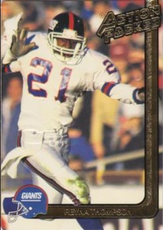 Reyna Thompson's Football cards are available in at least 5 sets. Reyna Thompson's biggest 7-day price movers are 1991 Action Packed NFLPA/MDA Awards #9 Base, 1990 Action Packed All-Madden #27 Base, and 1991 Action Packed #190 Base.