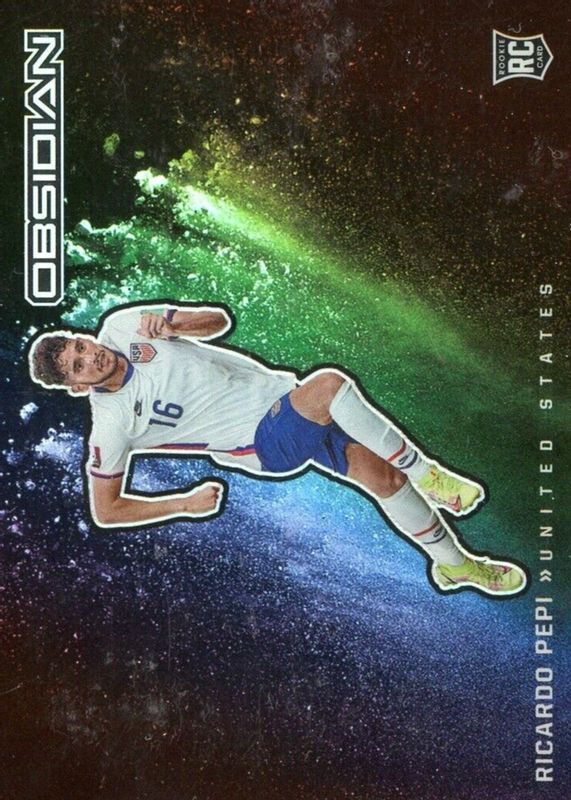 Ricardo Pepi's Soccer cards are available in at least 48 sets. Ricardo Pepi's biggest 7-day price movers are 2021 Obsidian #4 Black Color Blast /(SSP), 2022 Prizm World Cup #22 Manga /(SSP), and 2024 Prizm Copa America #23 New Era.